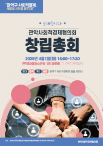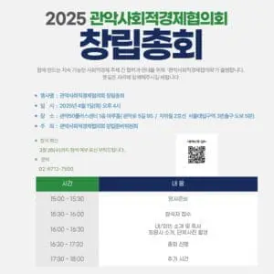 관악사회적경제협의회는 지역 사회의 경제적 자립과 사회적 가치를 증진하기 위해 창립 총회를 개최한다고 밝혔다. 이번 총회는 관악구 내 사회적경제기업과 예비 창업자들이 한자리에 모여 협력과 소통의 장을 마련하는 자리로, 많은 관심과 참여를 부탁드린다.